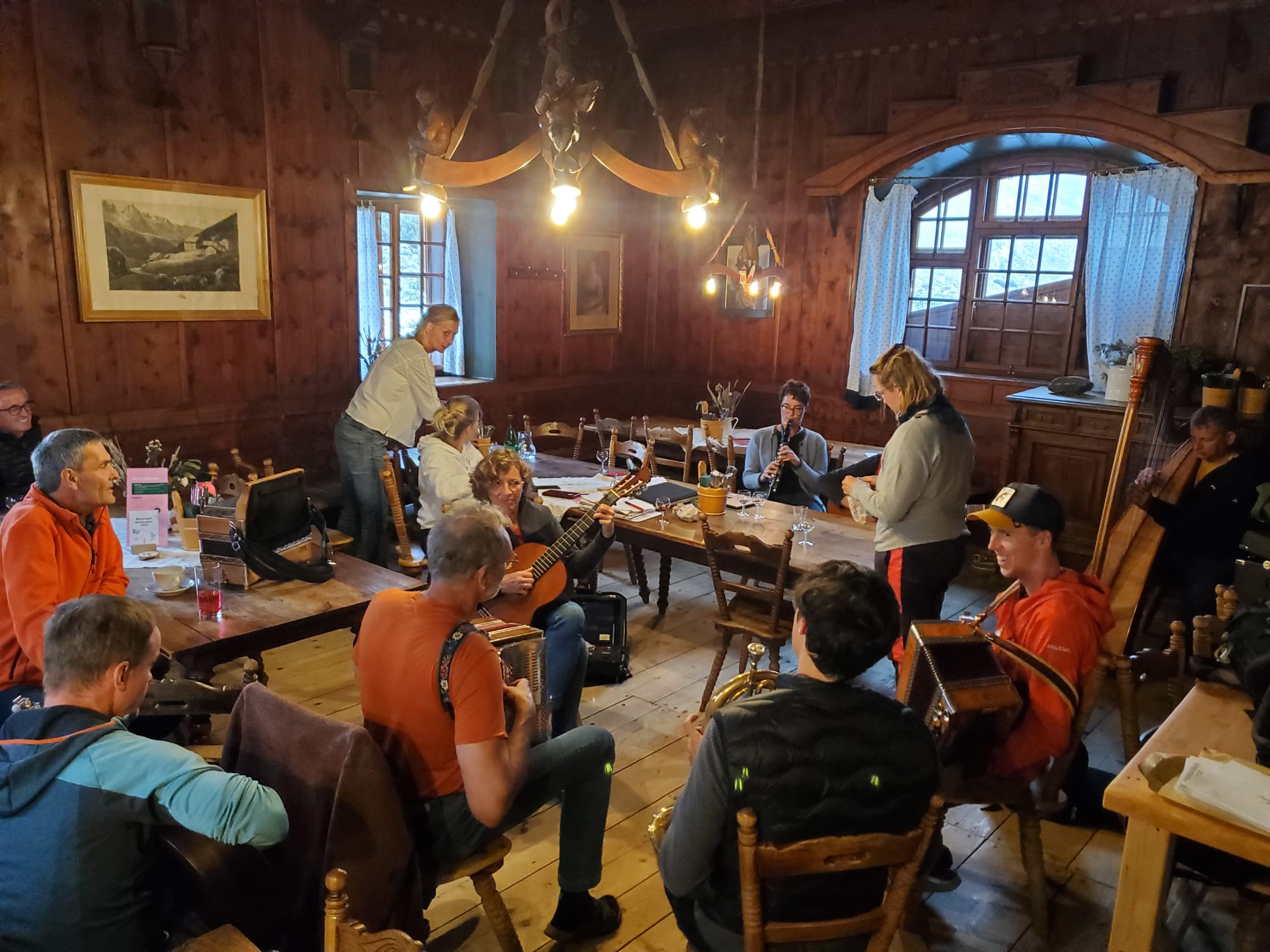 Steir. Harmonika, Harfe, Gitarre, Hackbrett, Zither, Holzblasinstrumente, Blechblasinstrumente, Streichinstrumente, Gruppenunterricht, gemeinsame abendliche Singstunde, …